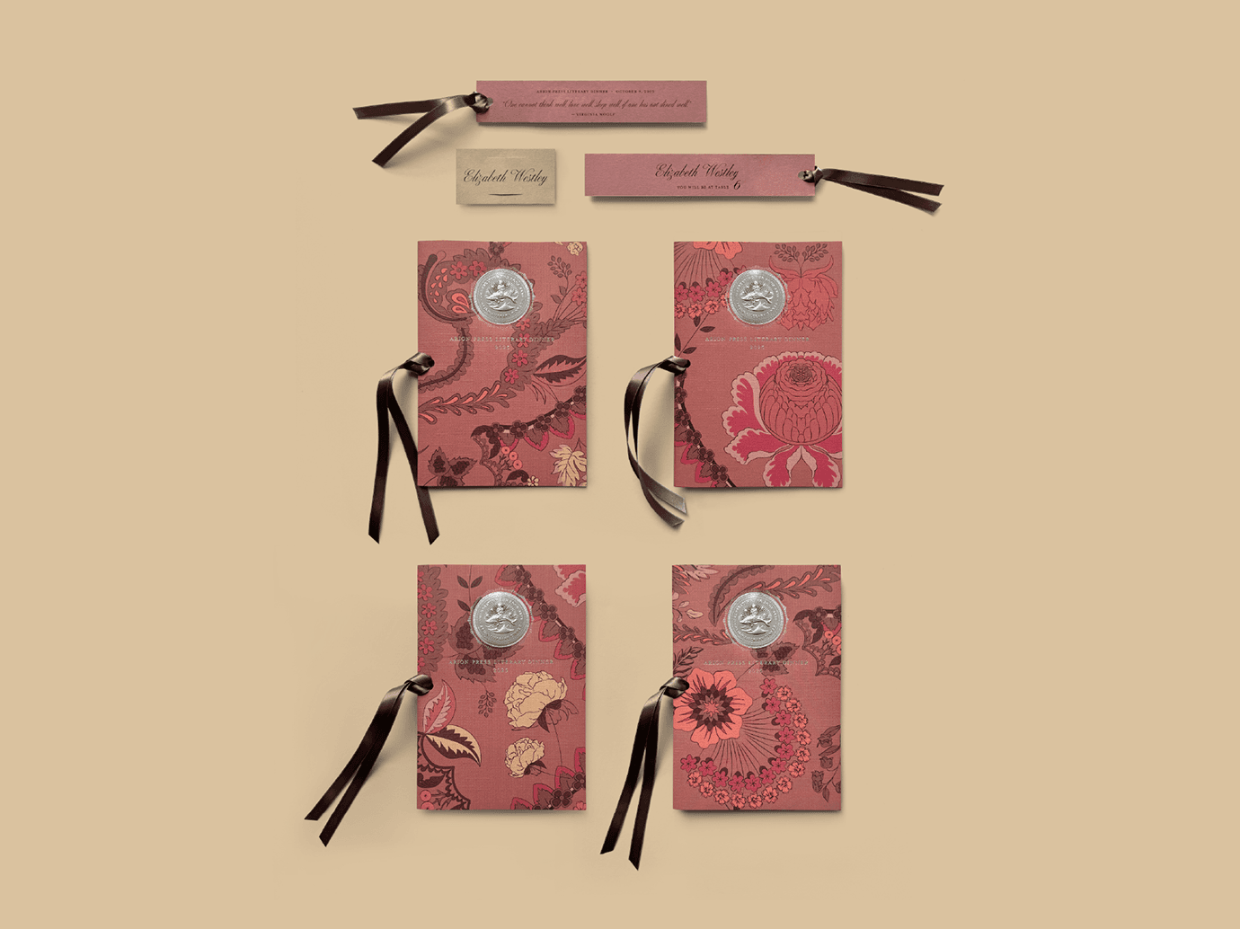 To capture the elegance of the novel, I designed a floral wallpaper that served as a unifying motif across the event collateral, appearing on both the invitation and program.