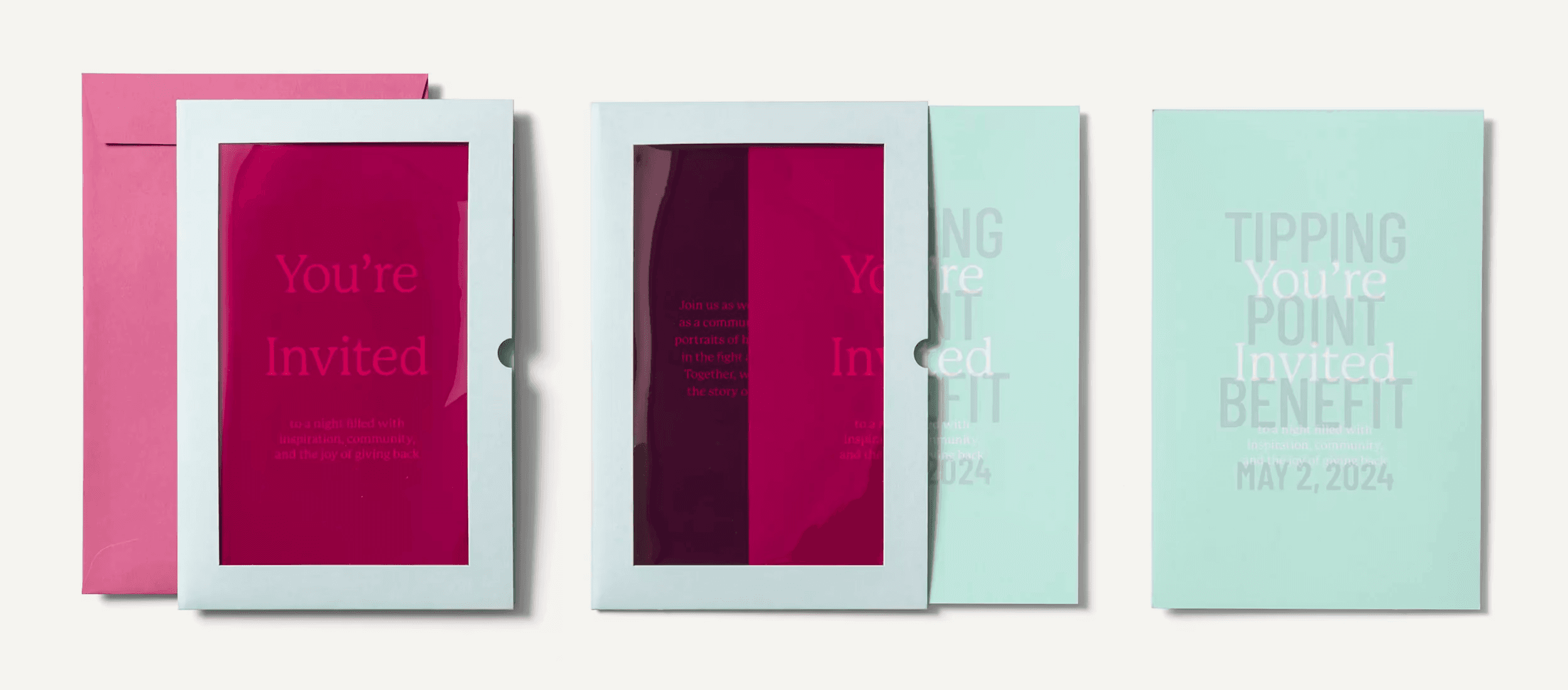 I designed an invitation inspired by the work Tipping Point does every year to shine a light on poverty in San Francisco. As guests opened their envelopes, they discovered hidden text, illuminating the night's true purpose: to celebrate community, hope, and the promise of change in the fight against poverty.